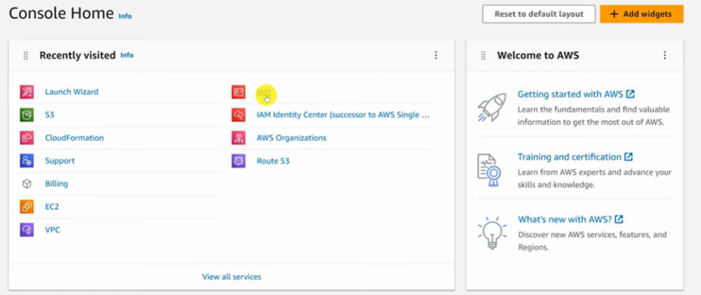 • En el buscador superior, selecciona el servicio IAM.