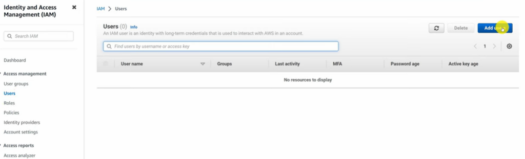 • En el menú lateral, dirígete a Users (Usuarios) y haz clic en el botón Add Users.