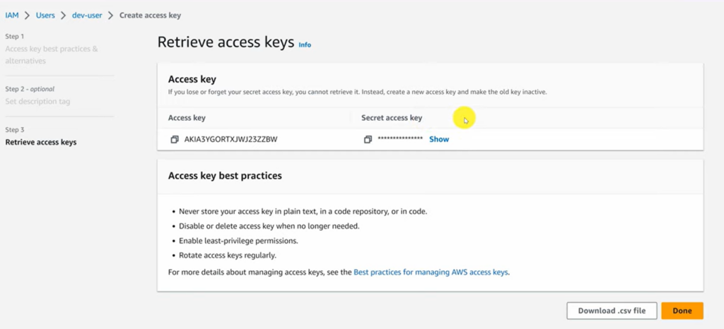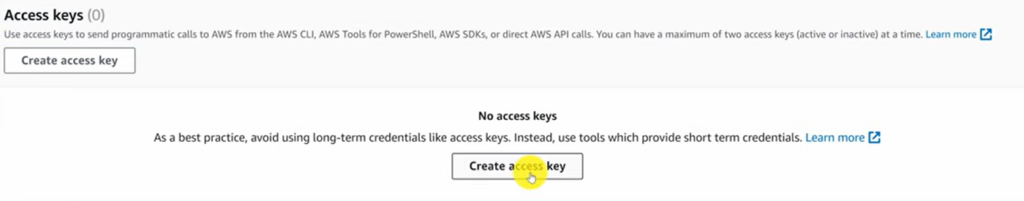 • Desplázate hasta Access keys y haz clic en Create access key.